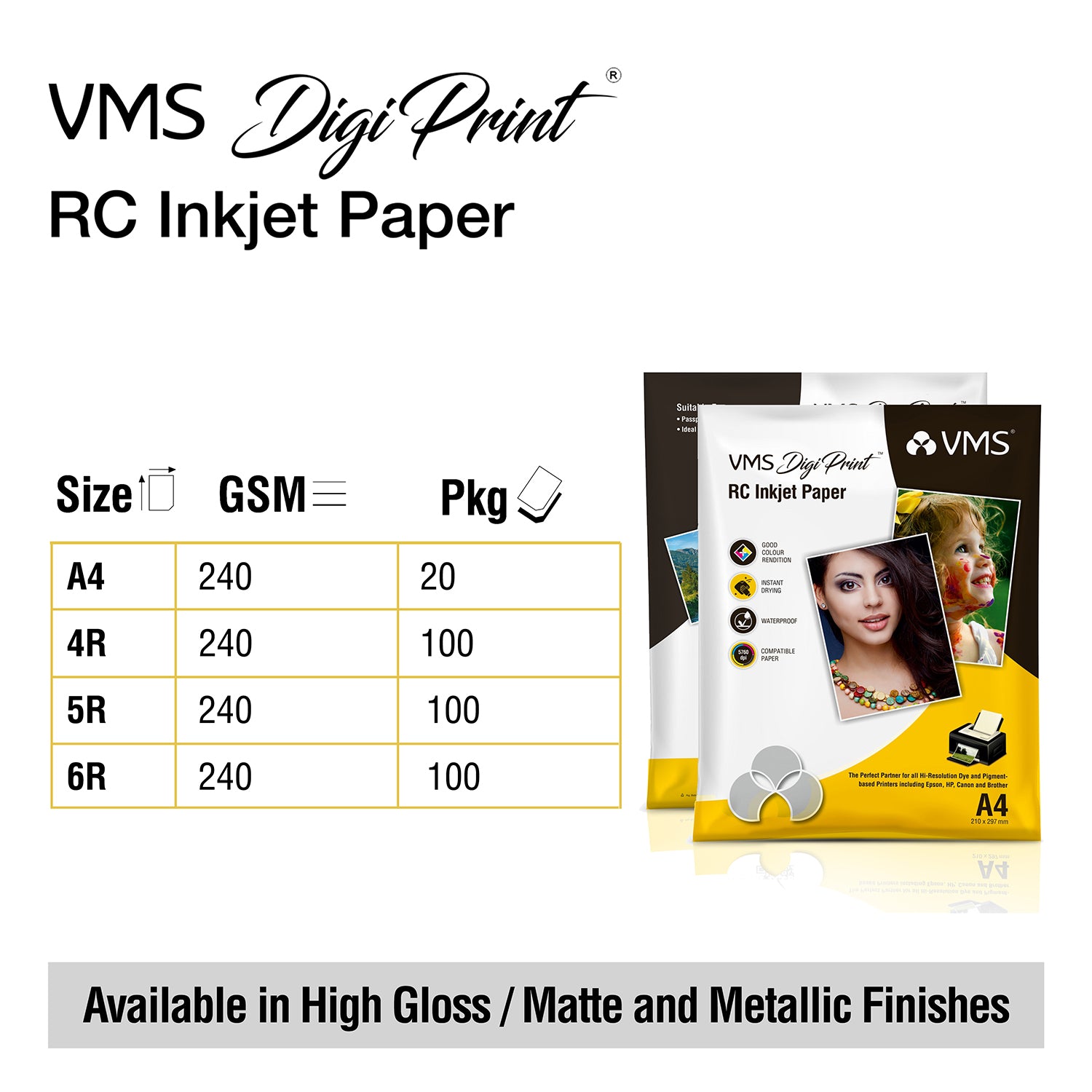 Superior Resolution: With printing resolutions of 1440dpi up to 5700dpi, VMS DigiPrint photo paper produces lifelike details in vivid colour rendition.