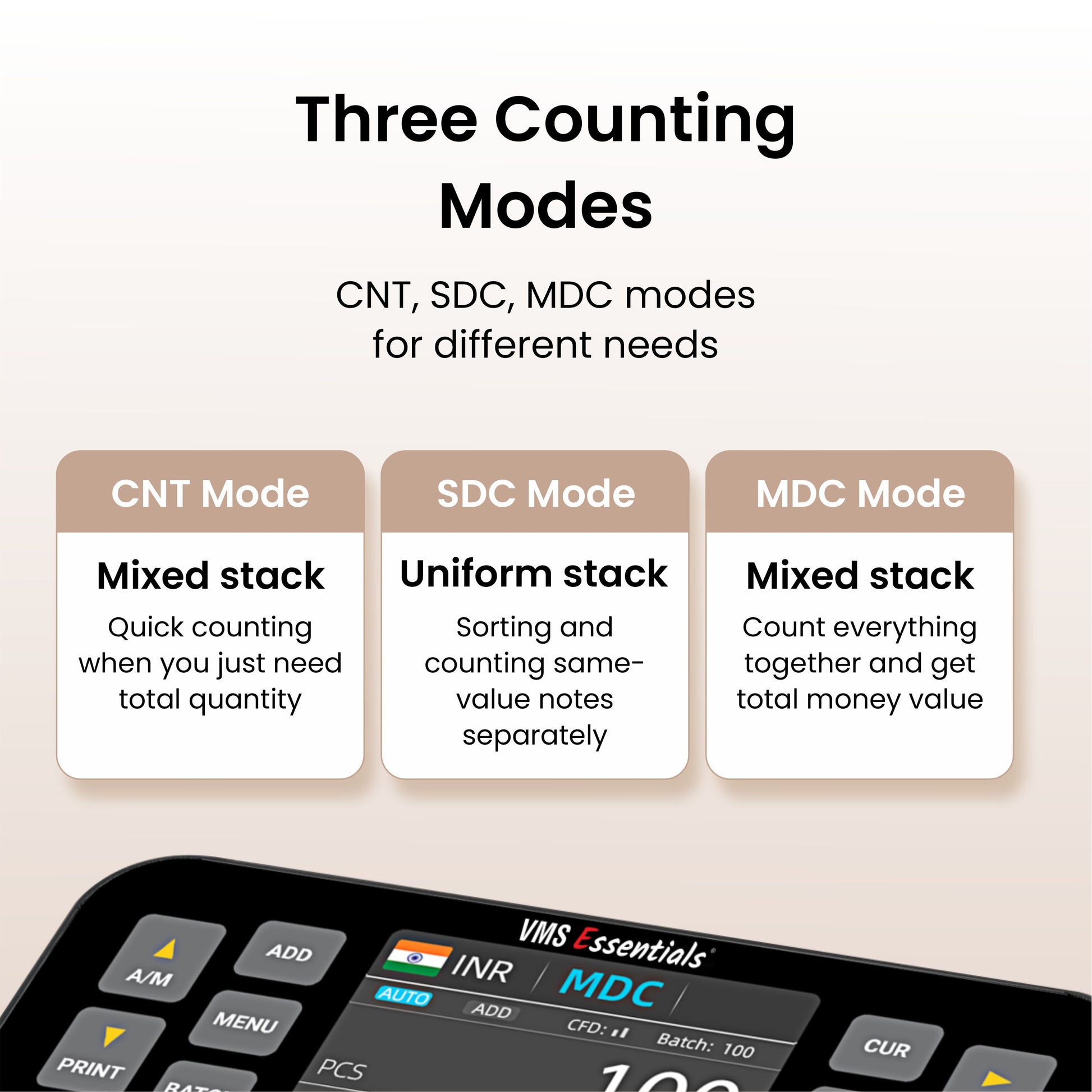 - Fast & Accurate Cash Counting – The machine counts all Indian currency notes from ₹10 to ₹2000 with high precision, saving you time and reducing manual counting mistakes.